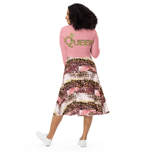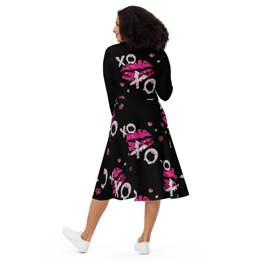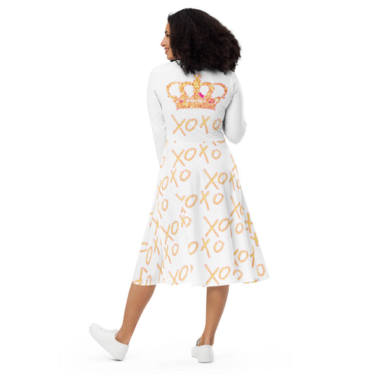 Royal print long sleeve midi dress 1